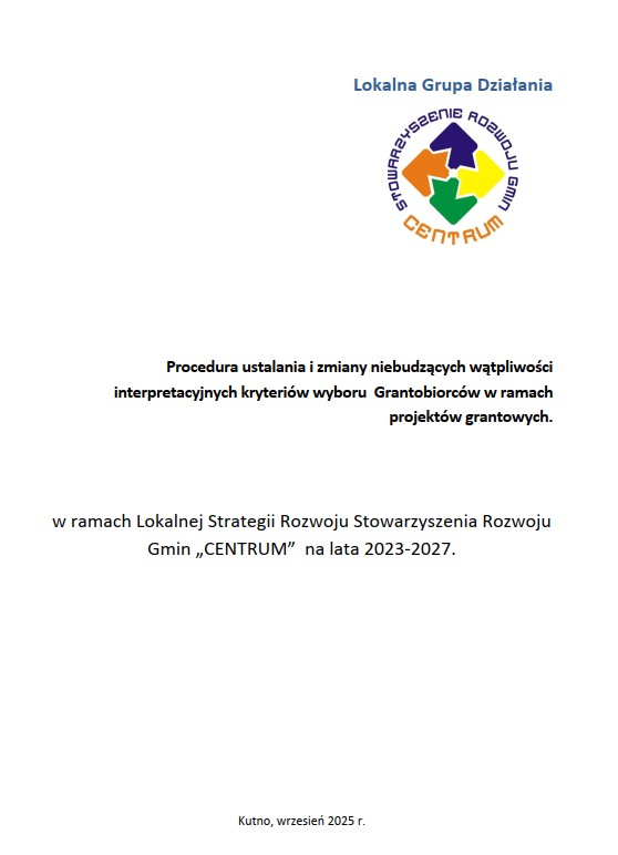 Procedura ustalania i zmiany niebudzących wątpliwości interpretacyjnych kryteriów wyboru Grantobiorców w ramach projektów grantowych.